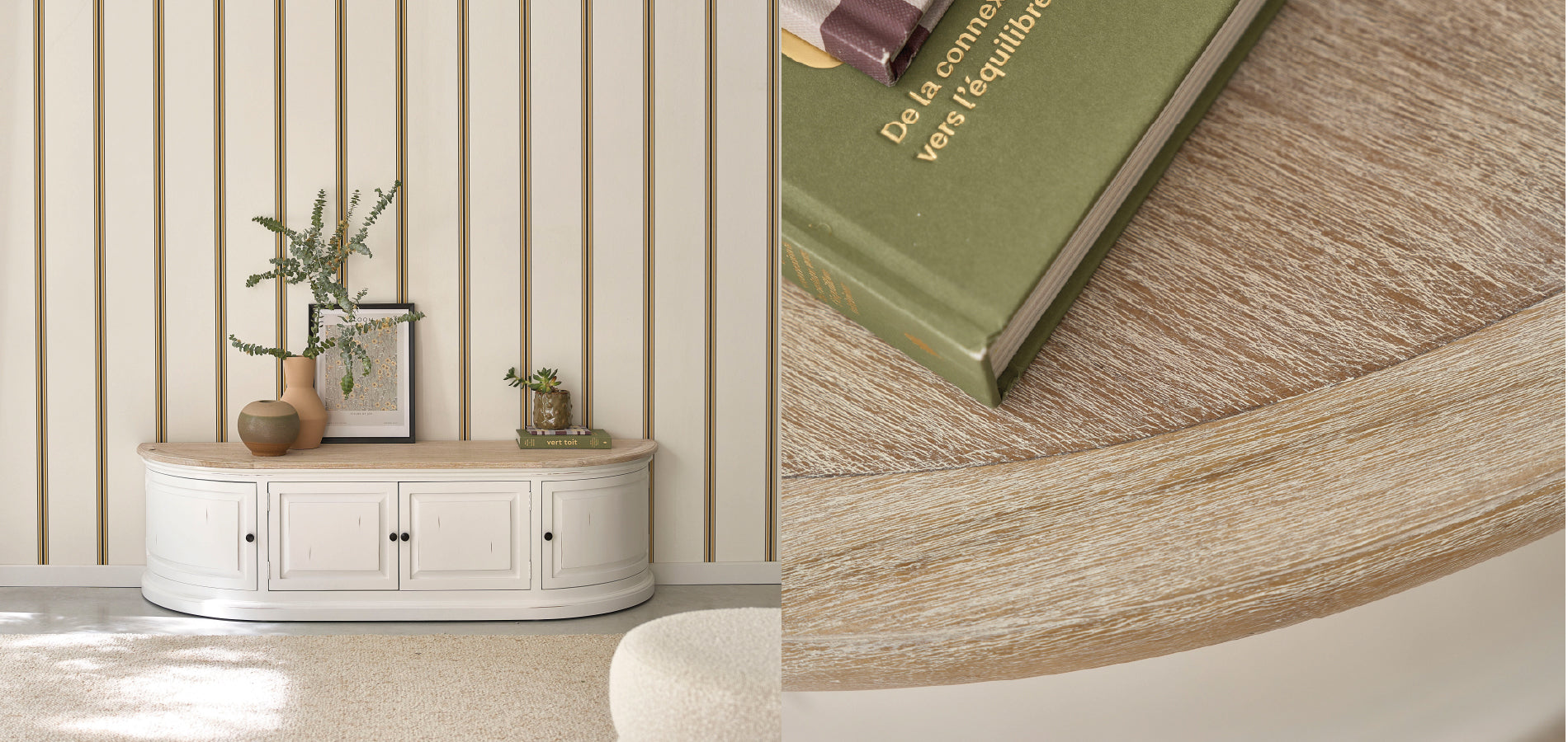 „Jedes Stück wird sorgfältig nach Qualität, Robustheit und zeitlosem Stil ausgewählt, der sich jeder Einrichtung anpasst, um einzigartige und warme Lebensräume zu schaffen.“